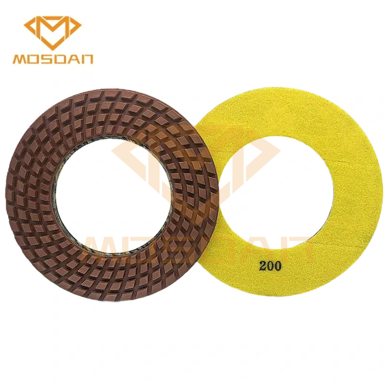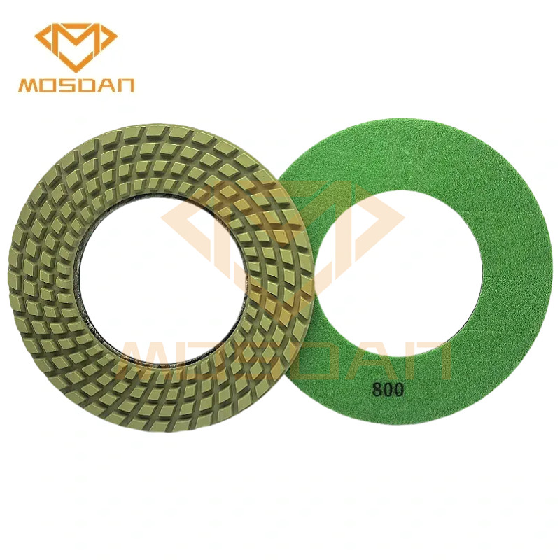 Mosdan Resin Bond Polishing Pads are designed for floor polishing machines to polish or restore or maintain for the floor of Concrete, Terrazzo, Marble, Granite and Limestone. They are backed with veclro, can be mounted on a rigid backer pad to fit on any floor machine and power trowel.