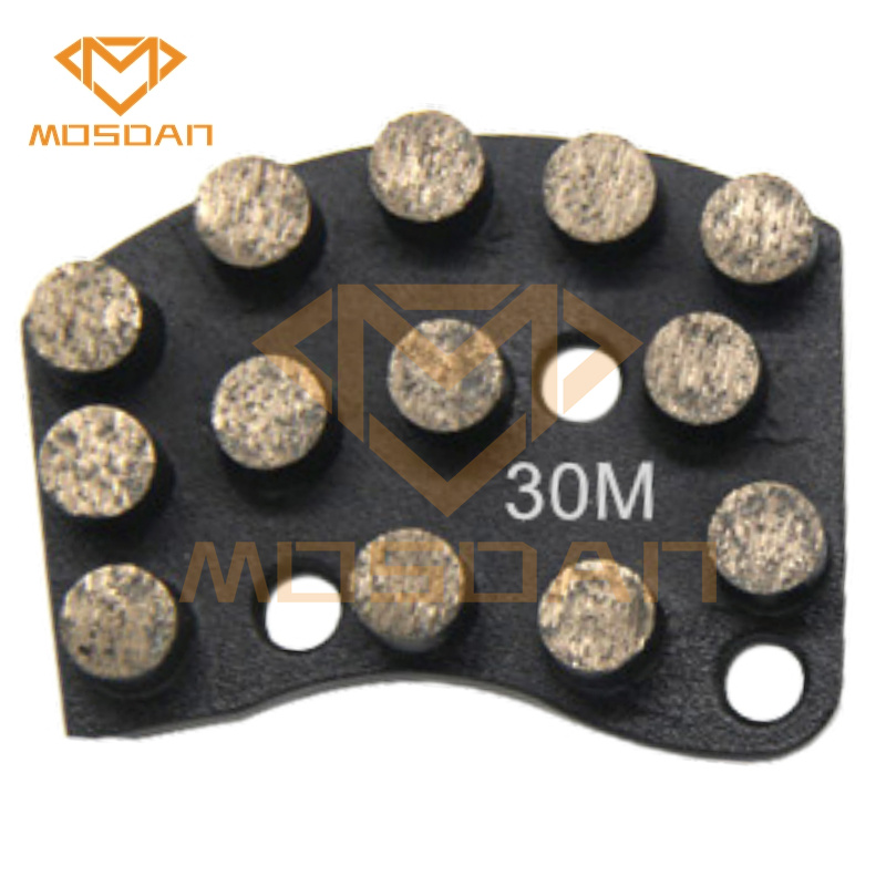 Grit: 6#, 16#, 18/20# diamond grinding plate are usually the first step of metal bond grinding for removal overlay and old rough surface. The coarse diamond particles make you deeply cut and very powerful removal and can significantly open the floor and expose the new substrate of concrete, so you can easily move to the next floor prep and resurfacing. These grits are also very ideal for thinner coating removal, like epoxy, urethane, arcylic etc .